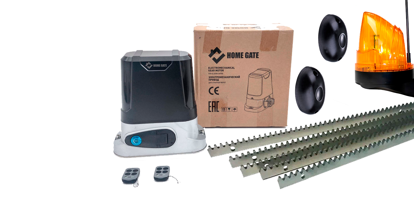 Электропривод для откатных ворот HOME GATE LTM 800 + рейка 5 шт + фотоэлементы + лампа